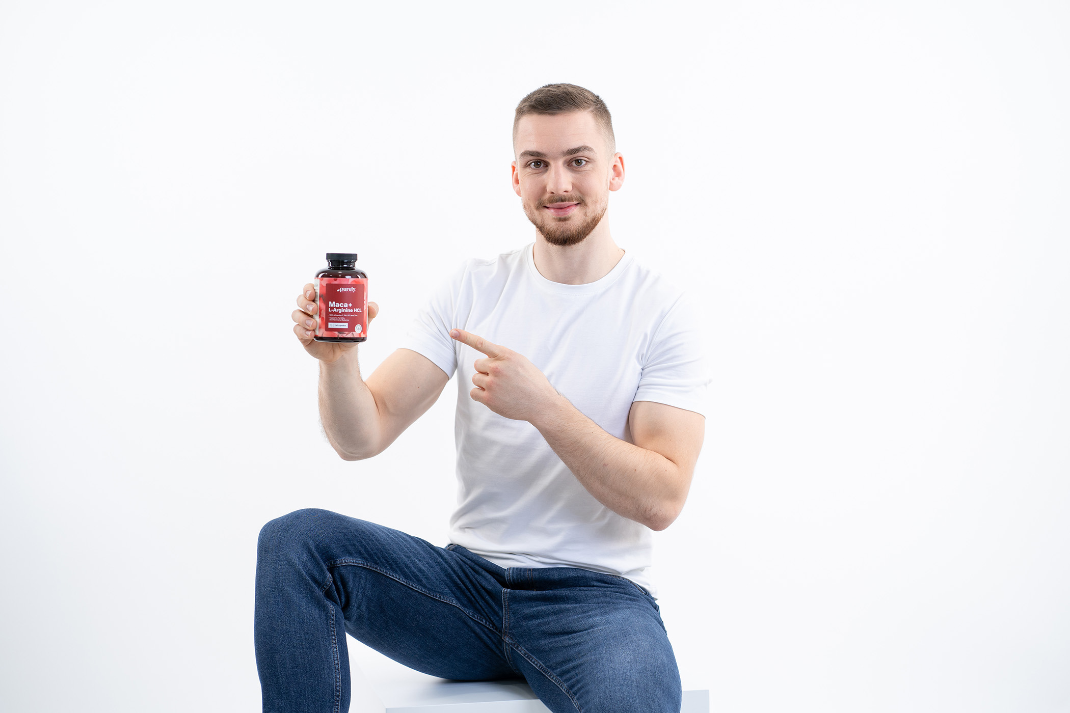 Összetevők: L-arginin HCl, maca kivonat (Lepidium meyenii; gyökér) 4:1 arányban, hidroxipropil-metil-cellulóz (HPMC; mázképző anyag), zsírsavak magnéziumsói (csomósodást gátló anyag), szilícium-dioxid (csomósodást gátló anyag), L-aszkorbinsav (C-vitamin), cink-glükonát, piridoxin-hidroklorid (B6-vitamin), cianokobalamin (B12-vitamin).