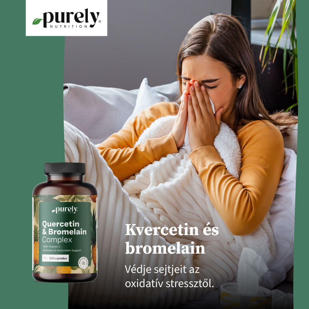 Kiemelkednek közülük a kvercetin, a bromelain és a C-vitamin – gondosan kiválasztott, természetes vegyületek, amelyek mindegyike egyedi tulajdonságokkal rendelkezik, együttesen pedig kiegyensúlyozott és kifinomult formulát alkotnak.